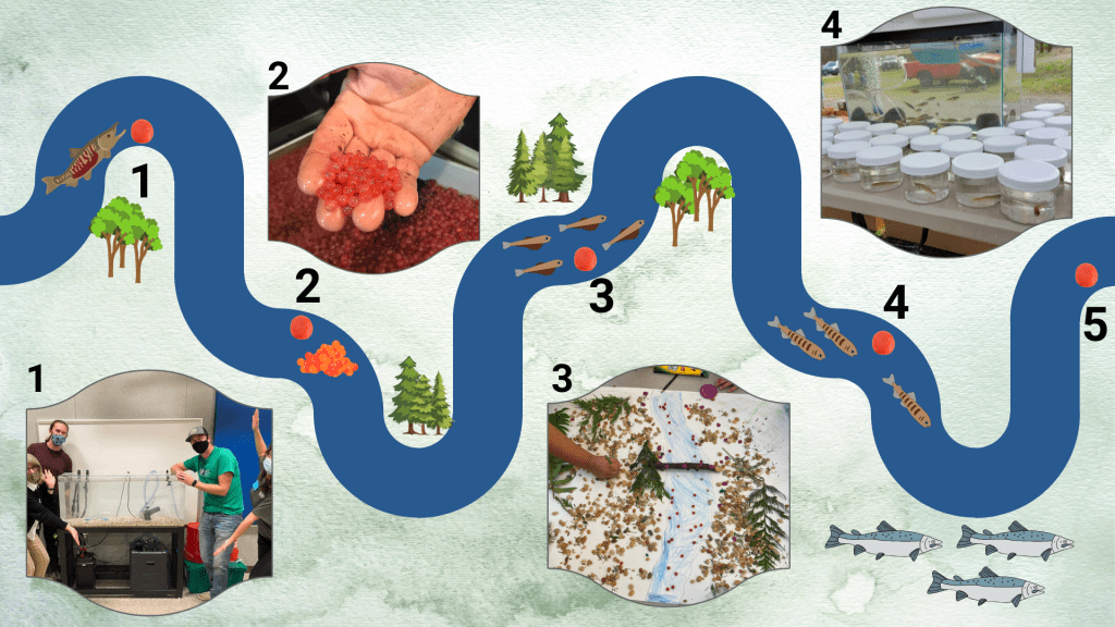 - October- November: School salmon tanks are set up and filled to properly “cycle” i.e. establish a healthy environment for salmon.
